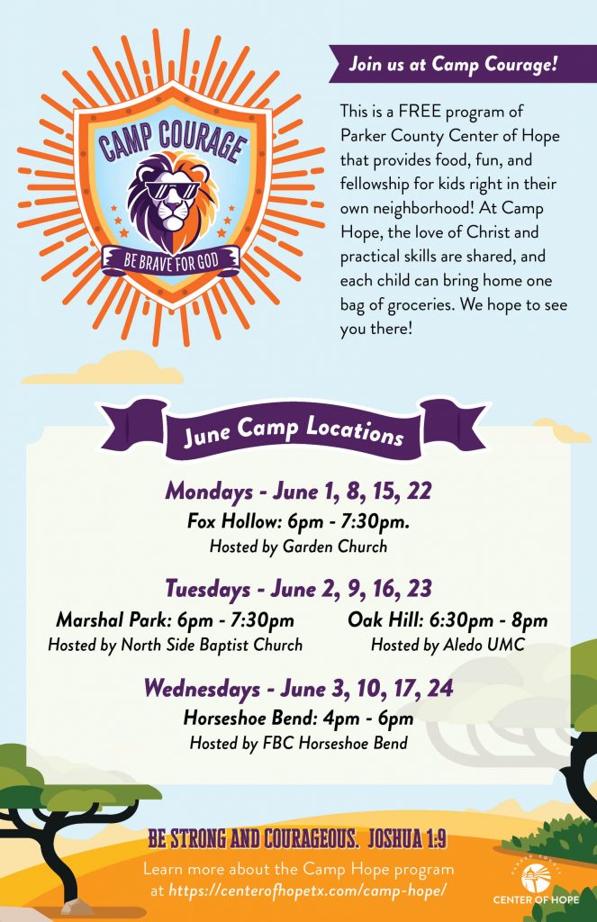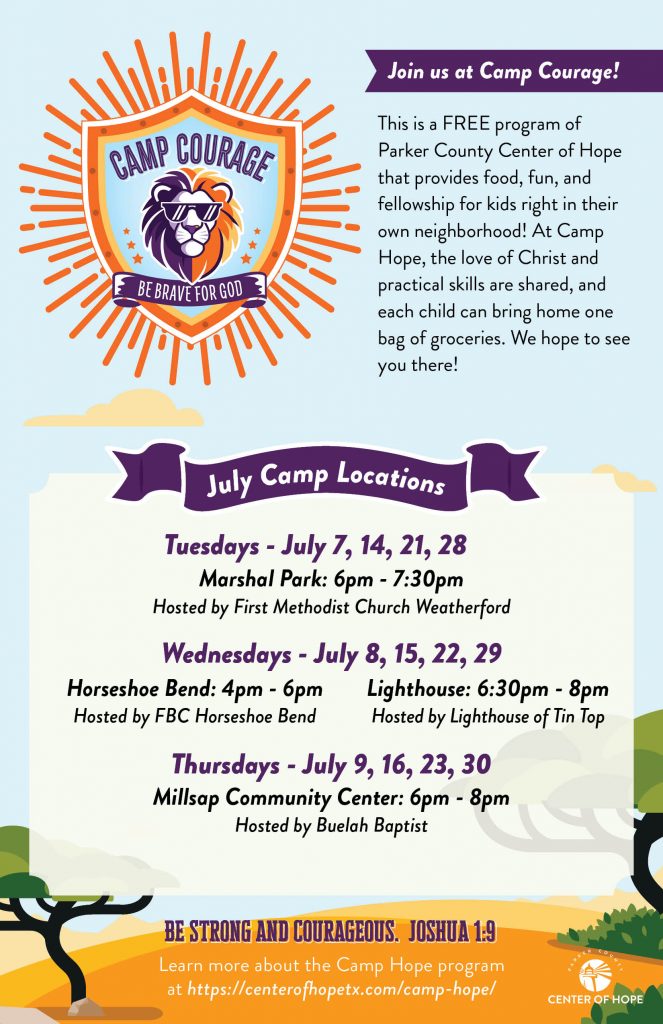 Camp Hope, our summer program for kids, ministers to families and children in Parker County with the focus to feed children physically, emotionally and spiritually.