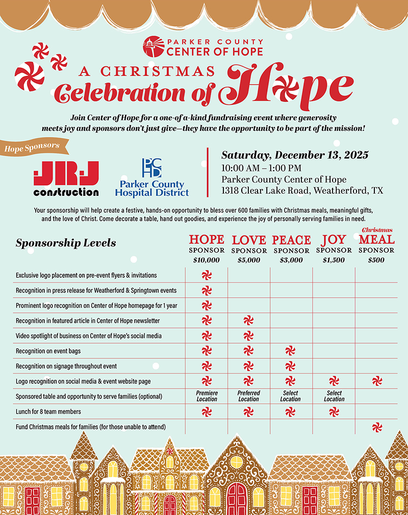 A Christmas Celebration of Hope To sponsor, contact Staci Markwardt: staci@centerofhopetx.com or Courtney McKeown at courtney@centerofhopetx.com. HOPE SPONSORS